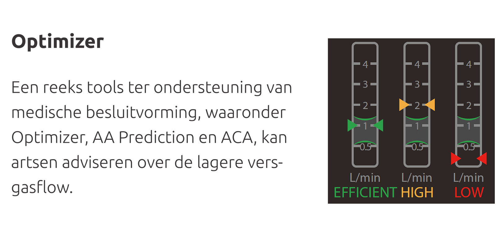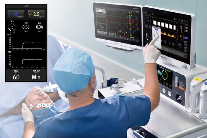 ACA kan automatisch de output van vers gas en verdampers aanpassen om snel de vooraf ingestelde concentratie voor het doel-eindtidalmiddel en zuurstof voor beademing te bereiken.