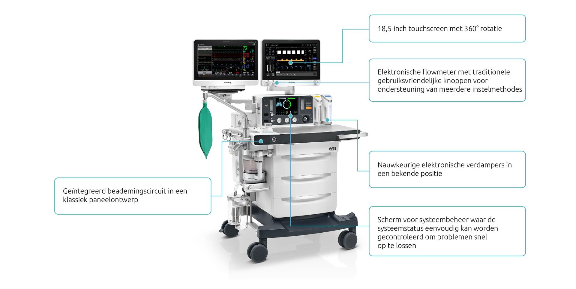 De A9 behoudt veel kenmerken van de traditionele manier van werken, maar introduceert tevens een aantal geavanceerde technologieën voor een intuïtief en veilig beheer van de anesthesieprocedure voor brede patiëntenpopulaties.