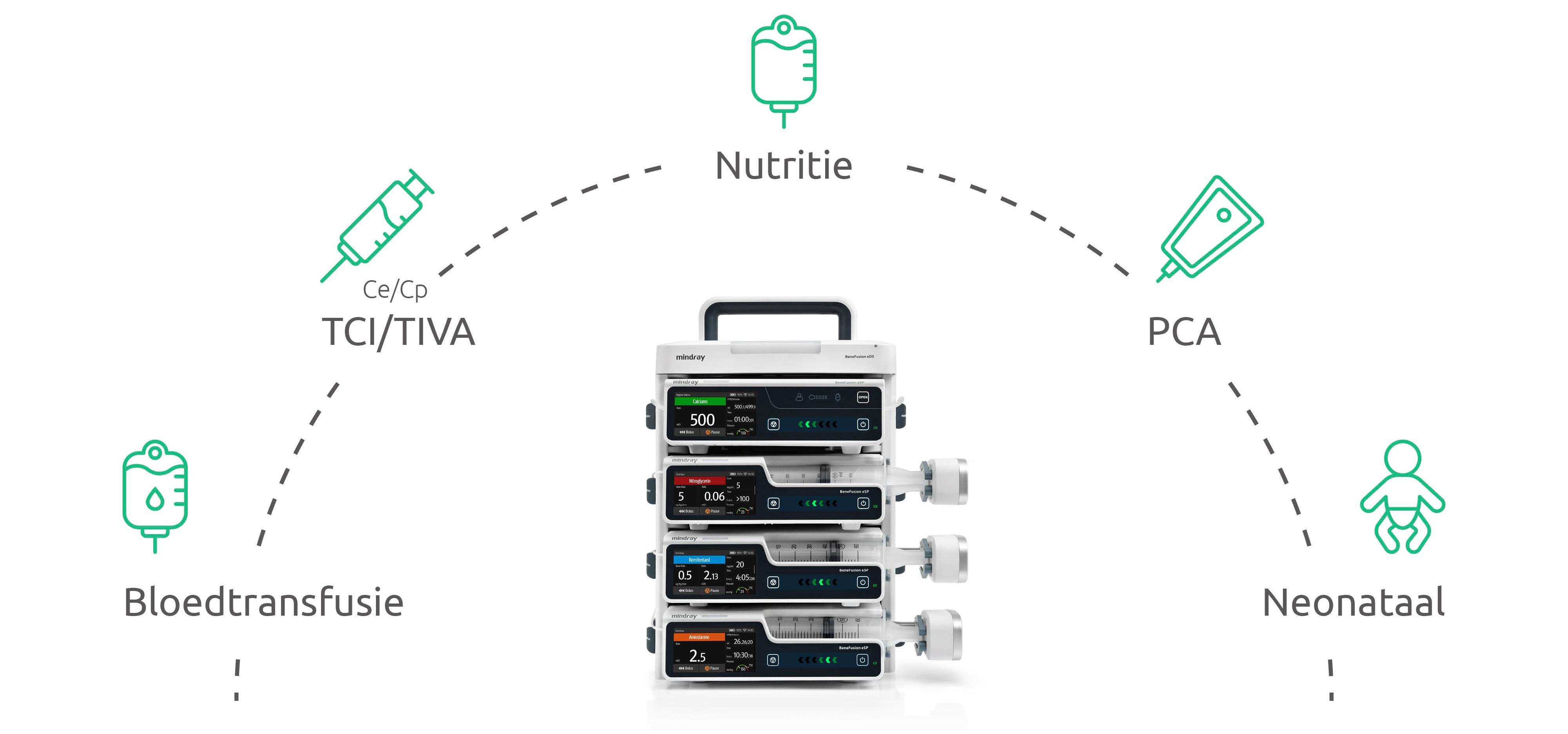 Door hun buitengewone veelzijdigheid voldoen de BeneFusion e spuitpompen (eSP) en volumetrische pompen (eVP) aan verschillende infusiedoeleinden.