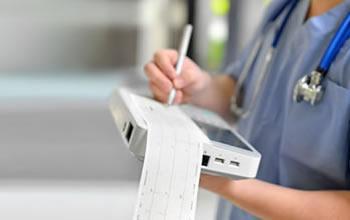 De ECG opname wordt automatisch uitgevouwen op het schrijfblok bovenop de machine voor opmerkingen of ondertekening.
