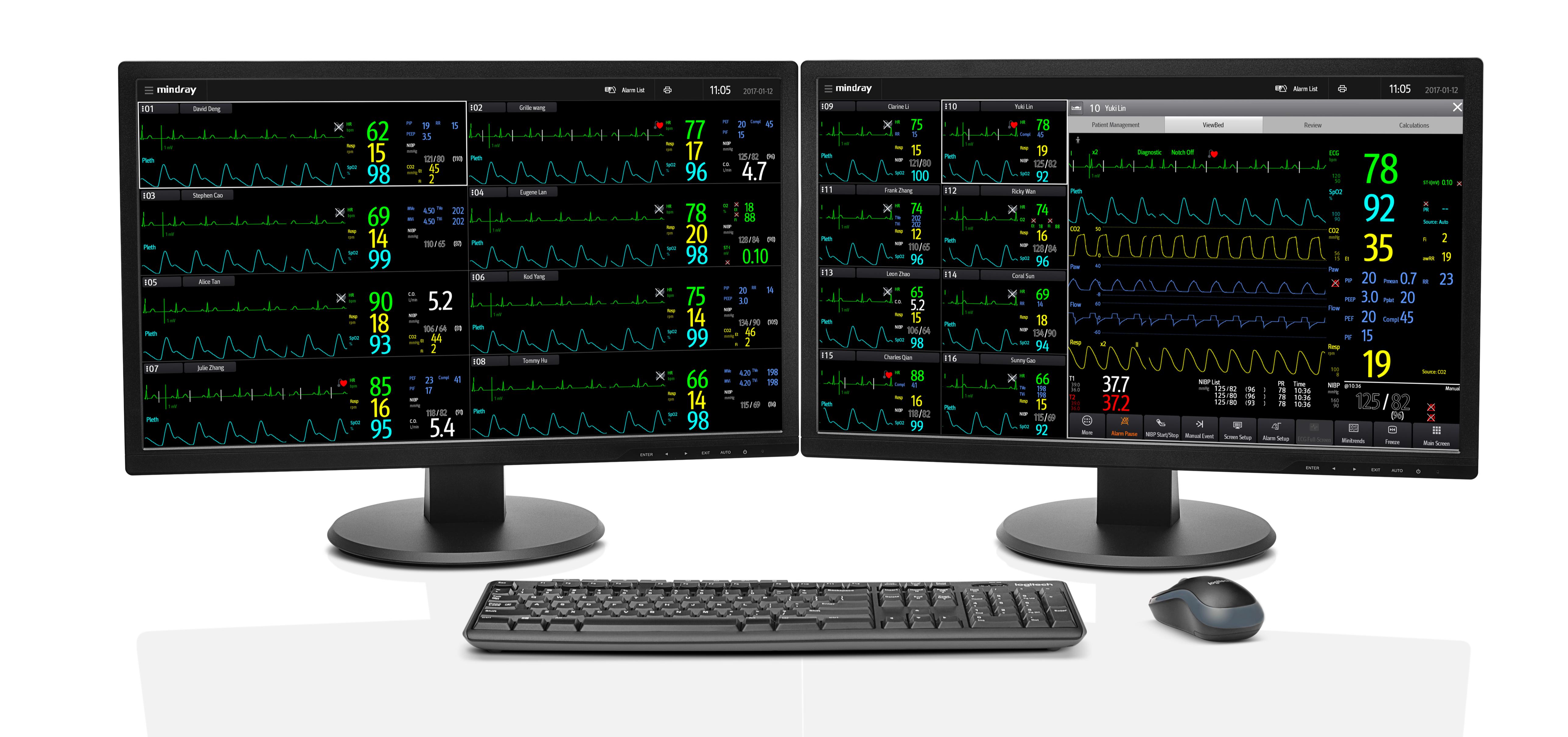 Zowel 19 inch TFT LCD-schermen en aanraakschermen worden ondersteund, waarop tot maximaal 16 patiënten tegelijkertijd kunnen worden weergegeven.