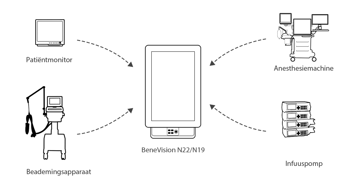 BeneLink integreert real-time alle bedinstrumenten op de monitor en ondersteunt gecentraliseerd gegevensbeheer.