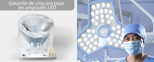 Convient pour diverses interventions chirugicales avec une intensité lumineuse de 160.000 lux maximum.