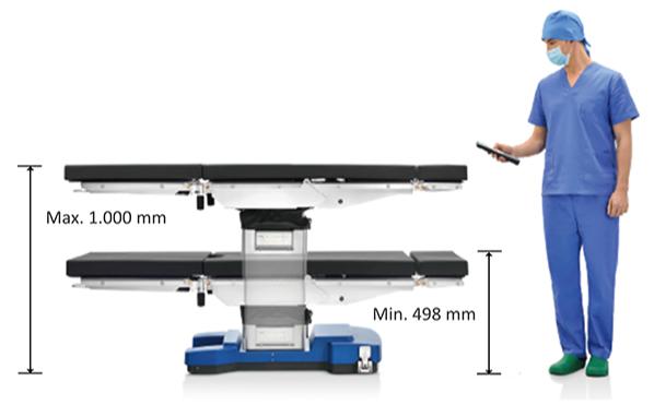Door zijn geringste tafelhoogte van 498 mm is de HyBase 6100 perfect voor minimaal invasieve chirurgie en neurochirurgie. De hoogte kan met in totaal 502 mm versteld worden tot maximum 1.000 mm, wat nuttig kan zijn voor bijvoorbeeld orthopedische ingrepen. De tafel biedt daardoor maximale flexibiliteit voor een veelzijdigheid aan posities en een optimale ergonomische werkomgeving.