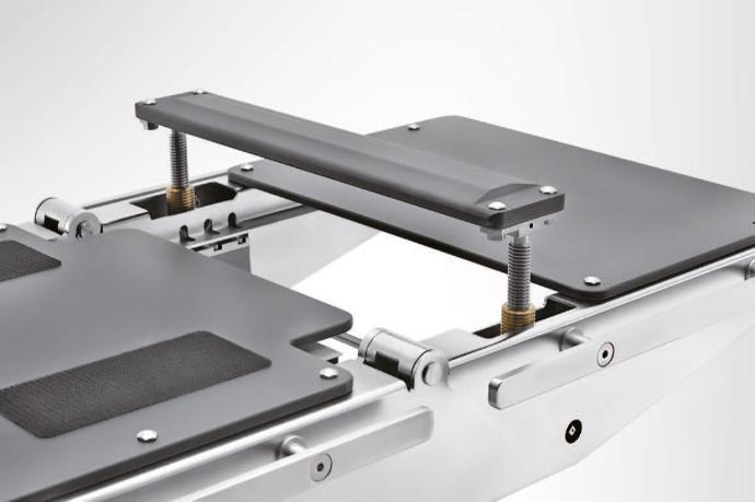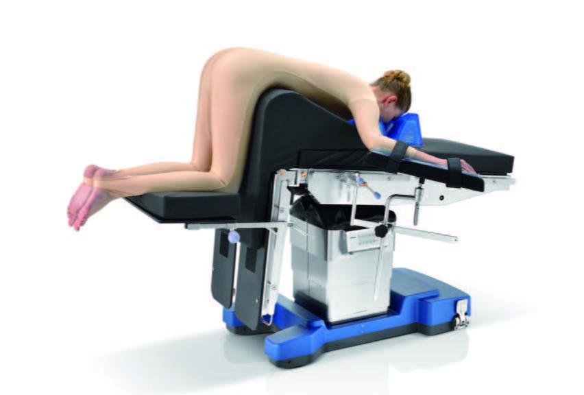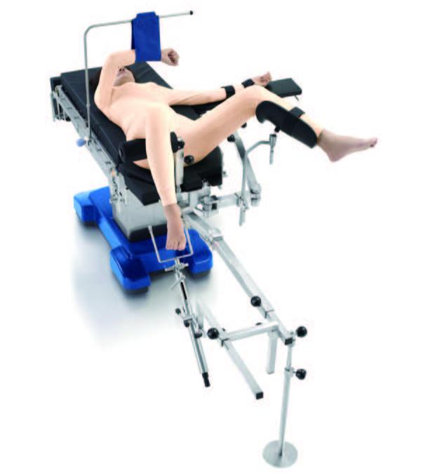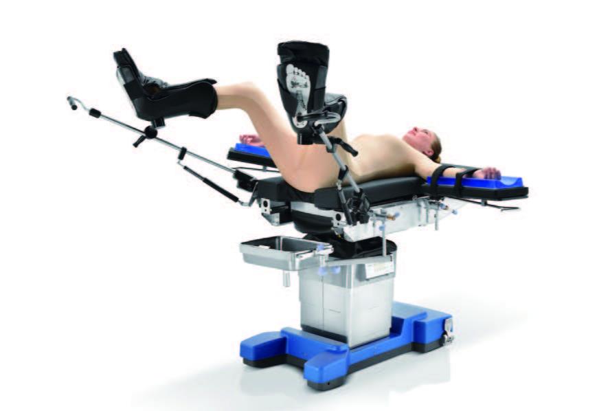 Het wegklapbare ontwerp van de beenplaat voorkomt dat de plaat losraakt tijdens bijvoorbeeld gynaecologische of urologische ingrepen. Het U-vormig ontwerp van het onderstel geeft chirurgen meer ruimte tijdens de ingreep.