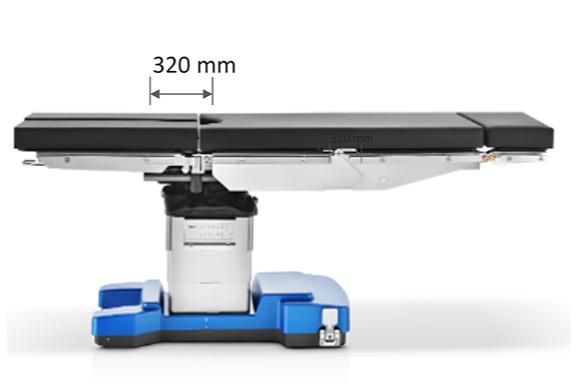 De beschikbare lengteverschuiving met in totaal 320 mm maakt een optimale toegankelijkheid van de C-boog mogelijk zonder de patiënt te herpositioneren.