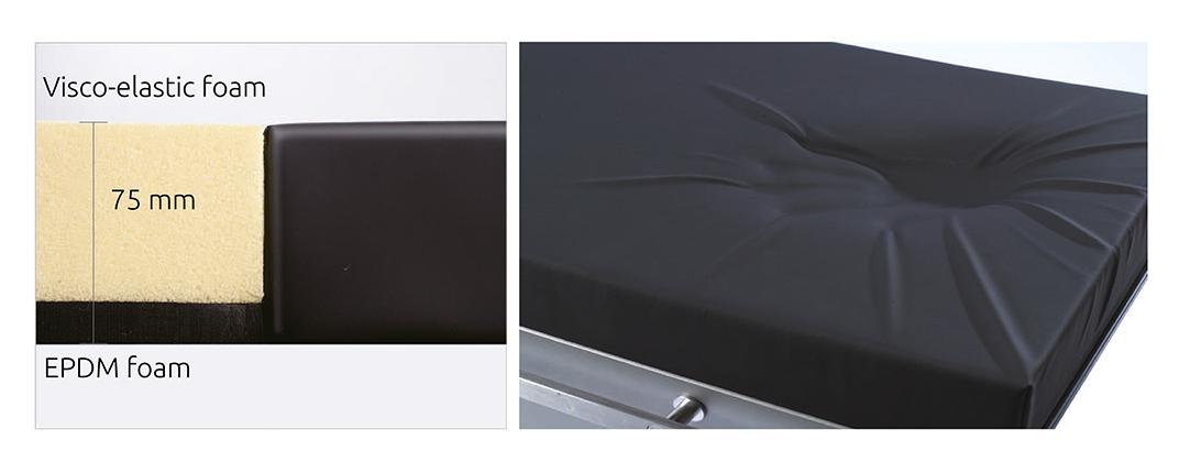 De meerlagige schuimkern zorgt voor een uitstekende drukverdeling ter preventie van decubitus letsels.
