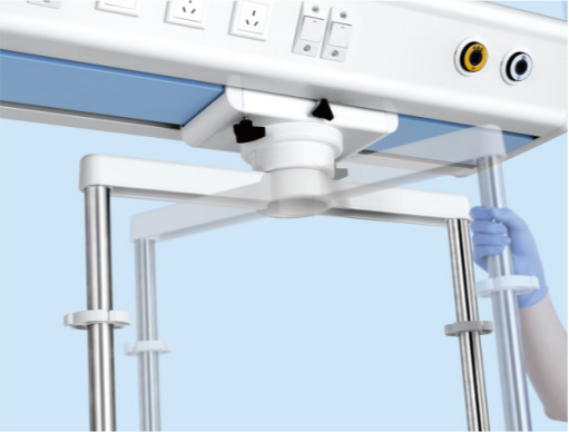 De twee LED lampjes op de balk geven 's nachts een zachte en gezellige verlichting, waardoor een meer comfortabele omgeving wordt gecreëerd voor de patiënt en voor de zorgverleners.