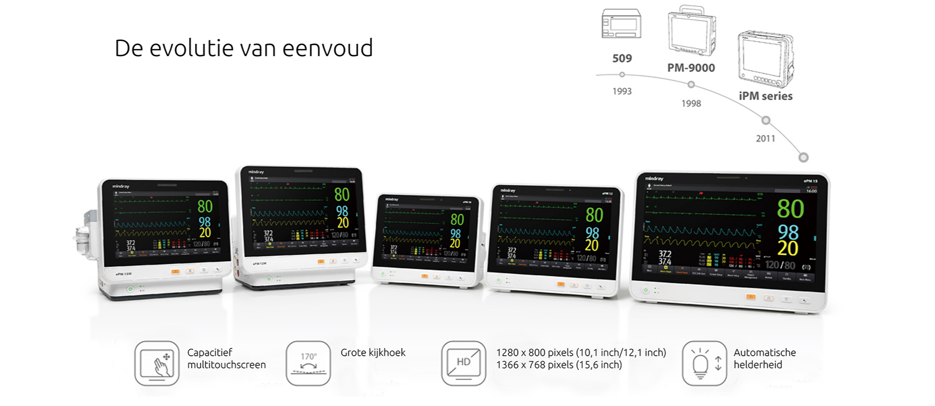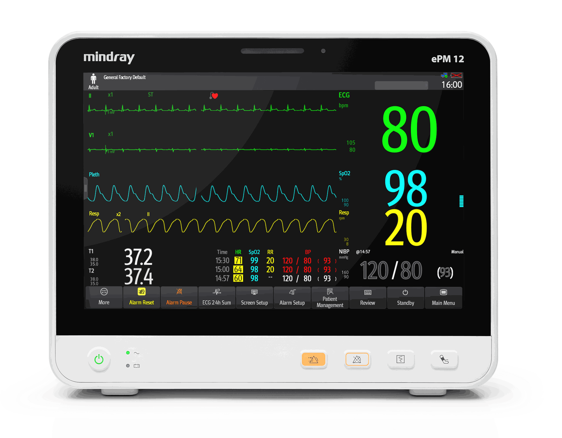 Mindray patiëntmonitors zijn geïnspireerd op de behoeften van de klant en maken gebruik van geavanceerde technologieën om deze in toegankelijke innovaties te transformeren. De ePM biedt een uitstekende visuele ervaring, intelligente bediening, nauwkeurige fysiologische metingen, soepele workflow en uitgebreide connectiviteitsopties voor veeleisende ziekenhuisomgevingen, zoals spoedeisende hulp, verkoeverkamers, subacute zorg en algemene afdelingen.